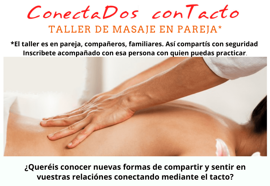 ¿Quieres compartir una experiencia maravillosa con esa persona especial en tu vida y que puede convertirse en un regalo inolvidable? Los talleres ConectaDos conTacto de masaje en pareja puedes hacerlos con tu pareja, compañer@, un familiar, un amigo etc. y seguro que os ayuda a reforzar vuestros vínculos de confianza entre ambos a través del tacto…